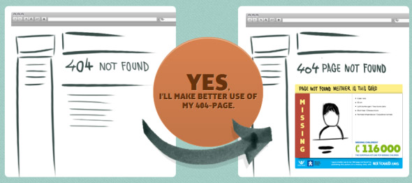 你一天能在網(wǎng)上看到多少404錯(cuò)誤頁(yè)面?為什么不充分利用一下這種資源呢?現(xiàn)在,你可以用它幫助別人尋找失蹤的孩子。