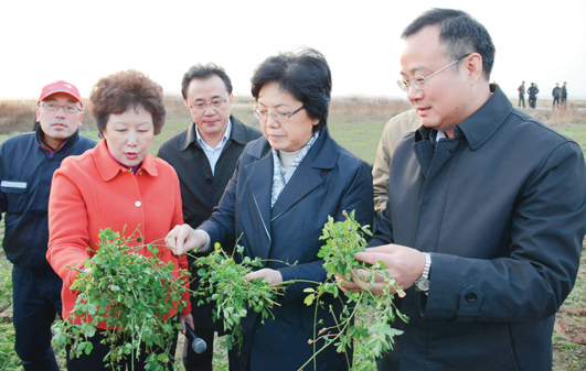 3日下午,李斌一行首先來(lái)到位于五河縣朱頂鎮(zhèn)的全國(guó)最大的紫花苜蓿生產(chǎn)基地——秋實(shí)草業(yè)有限公司調(diào)研。在市委書(shū)記周春雨、代市長(zhǎng)白金明的陪同下,李斌深入田間察看牧草長(zhǎng)勢(shì),當(dāng)她得知牧草品質(zhì)上乘,草場(chǎng)機(jī)械化作業(yè)達(dá)到世界先進(jìn)水平時(shí),不住地點(diǎn)頭稱贊。調(diào)研中,李斌和在這里打工的女拖拉機(jī)手、朱頂鎮(zhèn)小柳村村民劉小紅拉起家常,希望她通過(guò)自己的努力過(guò)上更加幸福美好的生活。